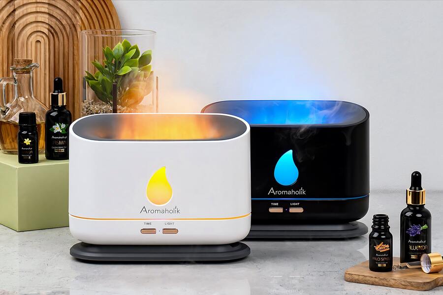 - Dodawanie olejków – Urządzenie zostało przystosowane do zastosowania z olejkami Aromaholik, które są rozpuszczalne w wodzie i nie zatykają kanalików.